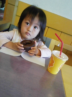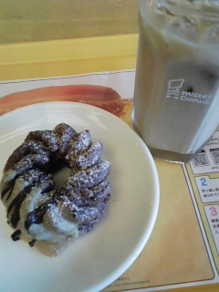 朝: ロールケーキ コーヒー おやつ; コアラのマーチ 80 コーヒー 昼食?:11時すぎに流れで・・・ ミスドでドーナツ1つ半 アイスカフェオレ
