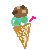 今度は、アイスクリームのチョコ部分が落ちて、ワンピにペタっ・・・