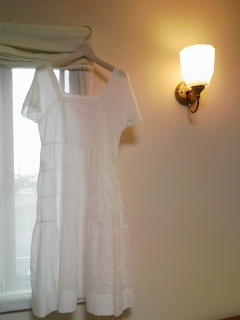 ・白いコットンシルクのティアードワンピ