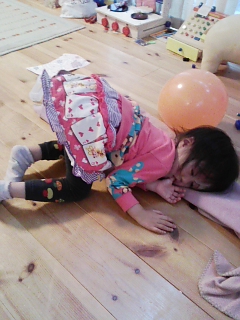 こんな変な格好で寝てました